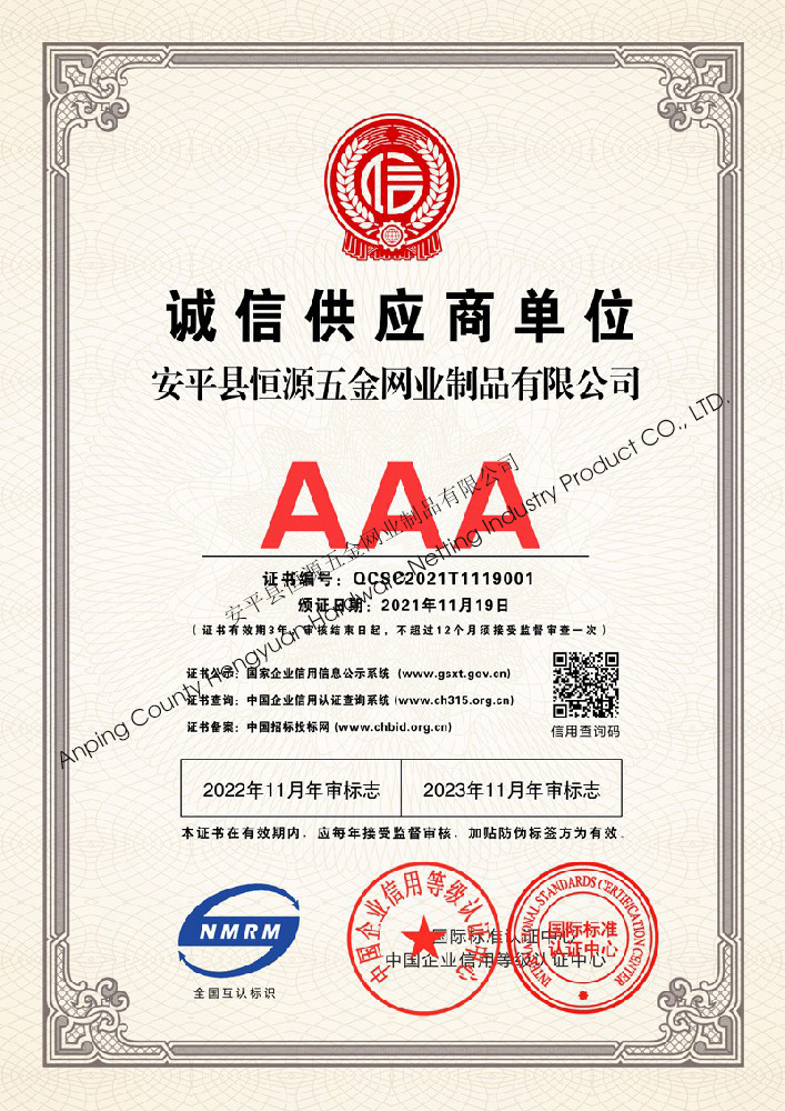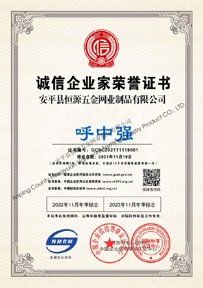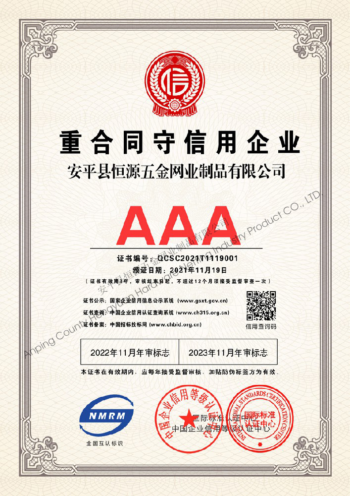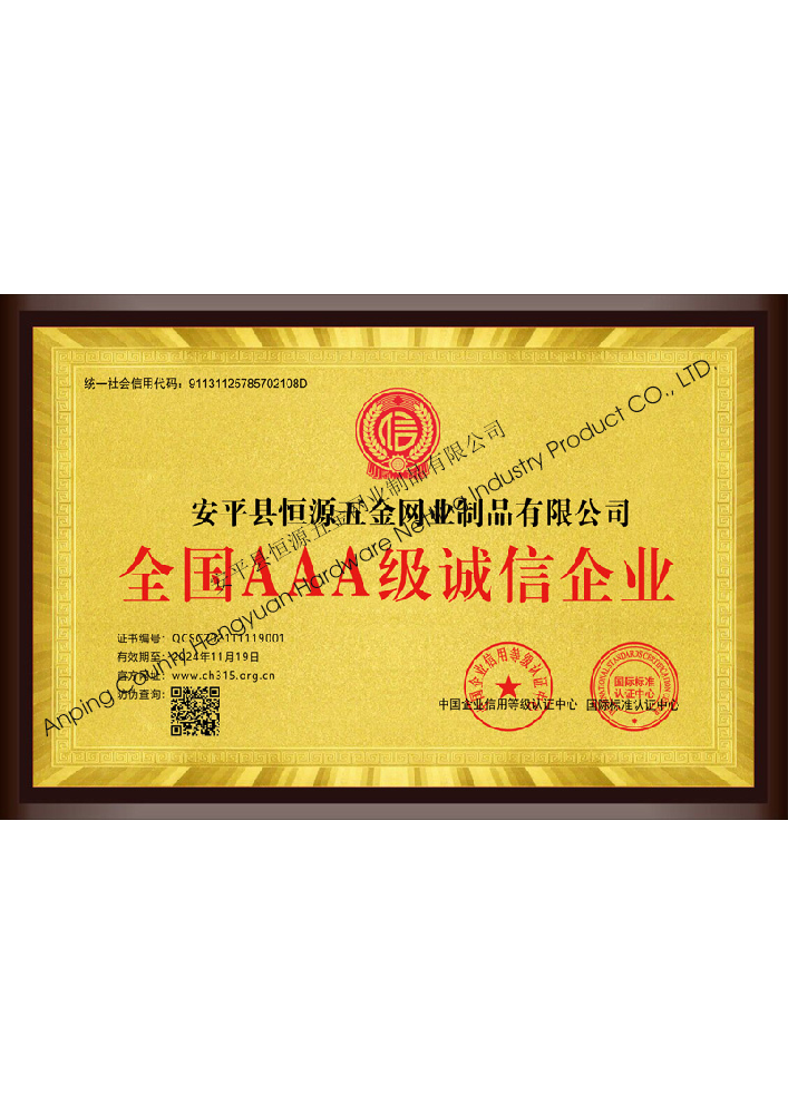 多年來,安平縣恒源五金網業制品有限公司堅持“科技興企、質量立業”的經營理念和“誠心為本、客戶至上”的合作宗旨,優化生產工藝,打造優質產品,提供完善的服務,受到國內外客戶的一致好評,產品行銷全國各地,并出口美國、德國、韓國、日本、臺灣等國家和地區。